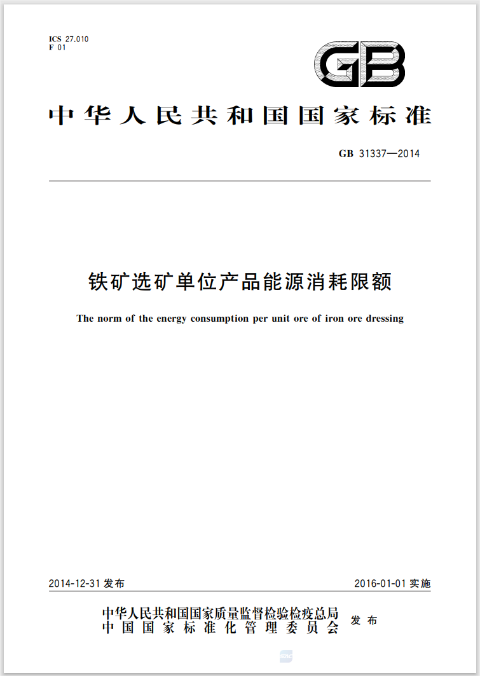 本標準適用于鐵礦選礦單位產品能耗的計算、考核及新建項目的能耗控制。