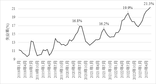 習(xí)近平總書(shū)記多次強(qiáng)調(diào),就業(yè)是最大的民生,青年就業(yè)工作要擺在更加突出位置。青年是國(guó)家的未來(lái)與希望,就業(yè)是青年群體最普遍、最迫切的需求之一。當(dāng)前,我國(guó)16~24歲青年失業(yè)率連創(chuàng)新高,不利于經(jīng)濟(jì)社會(huì)穩(wěn)定發(fā)展。中咨公司課題組研究指出,當(dāng)前青年失業(yè)率主要由經(jīng)濟(jì)增速和通脹水平回落以及供需錯(cuò)配等因素造成,要充分認(rèn)識(shí)到發(fā)展是解決青年失業(yè)問(wèn)題的根本動(dòng)力,做好職業(yè)教育和高等教育“兩頭抓”、不斷豐富就業(yè)信息來(lái)源和拓寬就業(yè)渠道、多途徑為失業(yè)青年提供保障,促進(jìn)青年更好成長(zhǎng)、更快發(fā)展。 一、青年失業(yè)率處于近年來(lái)高位 (一)當(dāng)前青年失業(yè)率約為疫情前的兩倍,成為拖累整體失業(yè)率的主因。統(tǒng)計(jì)局?jǐn)?shù)據(jù)顯示,疫情前我國(guó)青年失業(yè)率均值穩(wěn)定在10%左右,目前已經(jīng)超過(guò)20%。2020年青年失業(yè)率受疫情沖擊,月度峰值升至16.8%,2021年的月度峰值略微回落至16.2%,2022年全年的均值高達(dá)17.5%,為社會(huì)整體失業(yè)率的3.15倍,其中月度峰值達(dá)19.9%,創(chuàng)有記錄以來(lái)新高。今年4月,青年失業(yè)率首次突破20%,5月升至20.8%,6月份繼續(xù)攀升至21.3%,環(huán)比上升0.5個(gè)百分點(diǎn),已經(jīng)連續(xù)3個(gè)月創(chuàng)記錄新高,超過(guò)當(dāng)月社會(huì)整體失業(yè)率的4倍。 圖1 全國(guó)16~24歲人口城鎮(zhèn)調(diào)查失業(yè)率變動(dòng)趨勢(shì)圖 (二)失業(yè)率高于全球平均水平及主要經(jīng)濟(jì)體。2022年全球青年失業(yè)率平均為14.9%,其中歐洲和中亞地區(qū)為16.4%,亞太地區(qū)為14.9%,北美地區(qū)為8.3%,美國(guó)的青年失業(yè)率在2020年4月達(dá)到27.4%的峰值,但2022年已經(jīng)穩(wěn)定控制在8.5%以下,全球主要地區(qū)的青年就業(yè)形勢(shì)好于我國(guó)。 (三)低學(xué)歷人群是失業(yè)青年的主力,面臨更大的失業(yè)風(fēng)險(xiǎn)。相較于高校畢業(yè)生,高中及以下的低學(xué)歷青年人數(shù)更多,成為影響當(dāng)前青年失業(yè)率的重要因素。根據(jù)第七次人口普查數(shù)據(jù),當(dāng)前我國(guó)16~24歲的人口數(shù)量剔除在校生后,高中及以下低學(xué)歷就業(yè)人數(shù)占比近70%。按照青年人口數(shù)和調(diào)查失業(yè)率推算,青年失業(yè)人口可能超過(guò)2400萬(wàn)人,2022年高校畢業(yè)生剔除繼續(xù)升學(xué)人數(shù)后的求職人數(shù)約為950萬(wàn)人,表明當(dāng)前失業(yè)青年中低學(xué)歷人群的影響不容忽視。此外,2022年青年農(nóng)民工的數(shù)量為2800萬(wàn)人,該人群的工作崗位不穩(wěn)定更易受經(jīng)濟(jì)波動(dòng)影響,值得引起更多關(guān)注。 圖2 全國(guó)青年失業(yè)人數(shù)與高校畢業(yè)生人數(shù)對(duì)比圖 二、原因分析 (一)經(jīng)濟(jì)增速和通脹水平回落推高失業(yè)率。一方面,疫情以來(lái)經(jīng)濟(jì)增速回落推高失業(yè)率。奧肯定律揭示出宏觀經(jīng)濟(jì)增速和失業(yè)率呈反向關(guān)系,我國(guó)目前的經(jīng)濟(jì)增速仍未恢復(fù)至疫情前的水平,2023年2季度實(shí)際GDP環(huán)比增速出現(xiàn)回落,低于預(yù)期。同時(shí),我國(guó)經(jīng)濟(jì)面臨增速換擋,自然會(huì)出現(xiàn)失業(yè)率的走高,直接表現(xiàn)為作為初入就業(yè)市場(chǎng)的青年群體就業(yè)難現(xiàn)象。另一方面,通脹水平持續(xù)下滑短期內(nèi)抑制就業(yè)。近期國(guó)內(nèi)的通脹水平持續(xù)走低,數(shù)據(jù)顯示,自2023年3月開(kāi)始,我國(guó)CPI已經(jīng)連續(xù)4個(gè)月低于1%,6月份,CPI已經(jīng)降至0%,PPI同比下降5.4%,PPI同比降幅連續(xù)6個(gè)月不斷擴(kuò)大。根據(jù)菲力普斯曲線,短期內(nèi)失業(yè)率與通貨膨脹率之間存在明顯的交替關(guān)系,因此,國(guó)內(nèi)的低通脹進(jìn)一步推高了失業(yè)率。 圖3 短期內(nèi)失業(yè)率與通貨膨脹率之間的關(guān)系 (二)供需錯(cuò)配進(jìn)一步加劇失業(yè)風(fēng)險(xiǎn)。一是部分行業(yè)用人需求出現(xiàn)萎縮。根據(jù)普查數(shù)據(jù),有近50%的青年人就業(yè)主要集中在制造業(yè)、批發(fā)零售、住宿餐飲等行業(yè),但是近年來(lái)受疫情沖擊,居民消費(fèi)需求恢復(fù)緩慢,住宿餐飲等服務(wù)行業(yè)收縮明顯,同時(shí)勞動(dòng)密集型制造業(yè)與低端制造外遷,致使其吸納就業(yè)能力下降,對(duì)青年群體尤其是低學(xué)歷青年就業(yè)形成拖累。二是畢業(yè)生供給持續(xù)創(chuàng)新高。每年高校畢業(yè)生人數(shù)都在持續(xù)遞增,2023年高校畢業(yè)生已經(jīng)達(dá)到1158萬(wàn)人,比本世紀(jì)初高出十倍之多,剔除考公、考研、出國(guó)的人數(shù),預(yù)估仍將有950萬(wàn)應(yīng)屆生進(jìn)入職場(chǎng),激烈程度每年只增不減。再加上近年外國(guó)留學(xué)人員回國(guó)求職人數(shù)上升,進(jìn)一步增加了青年求職群體的就業(yè)壓力。三是結(jié)構(gòu)性矛盾突出。一方面,青年學(xué)生就業(yè)觀不實(shí)際。很多畢業(yè)生對(duì)就業(yè)環(huán)境、行業(yè)、城市的期望與實(shí)際勞動(dòng)力市場(chǎng)提供的條件存有落差,青