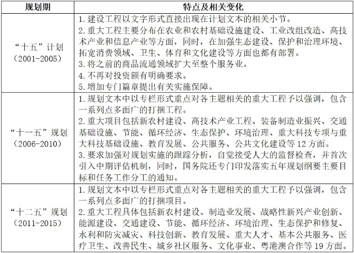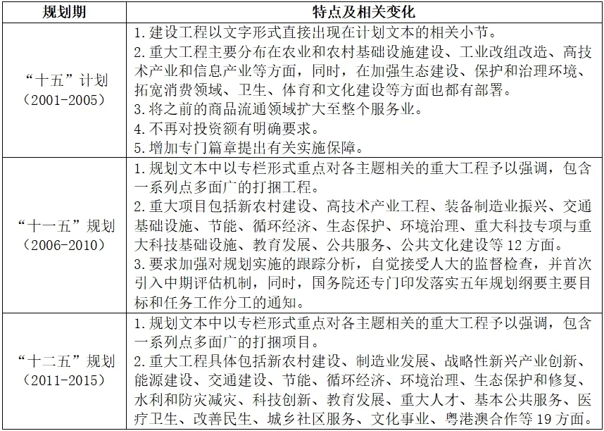 表3 “十五”至“十二五”規劃(計劃)中的重大工程特點
