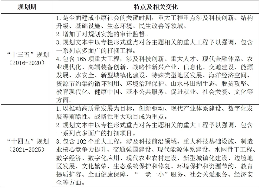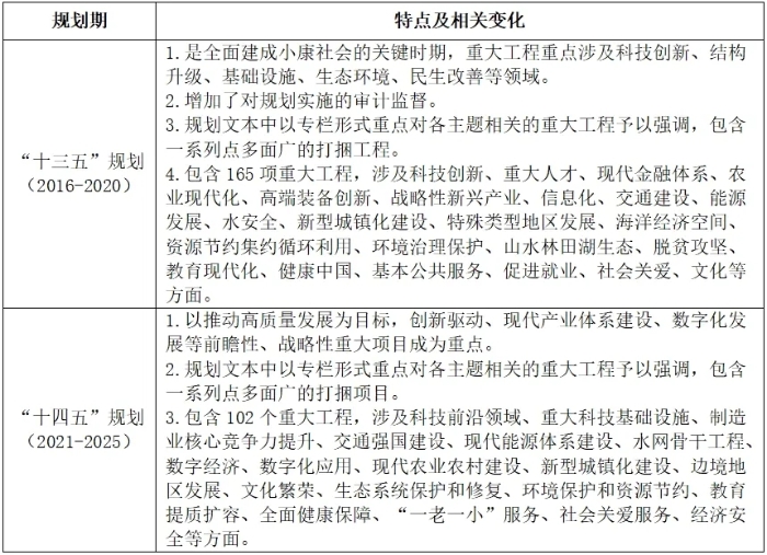表4 “十三五”“十四五”規劃中的重大工程特點