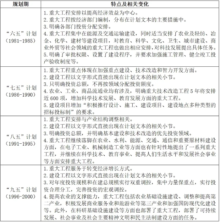 五年規劃(計劃)文本中重大工程的歷史回顧