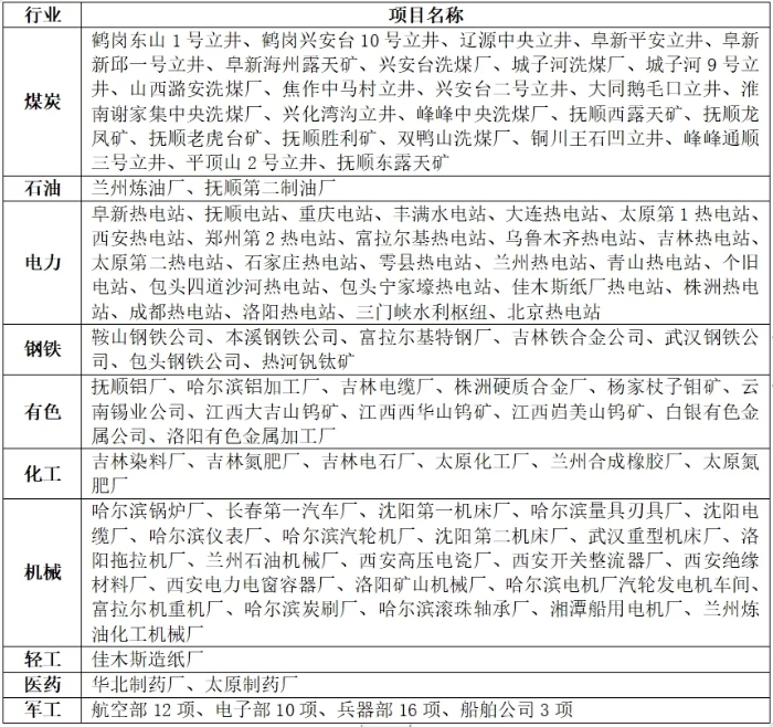 表1 “一五”計劃中的156個重點項目